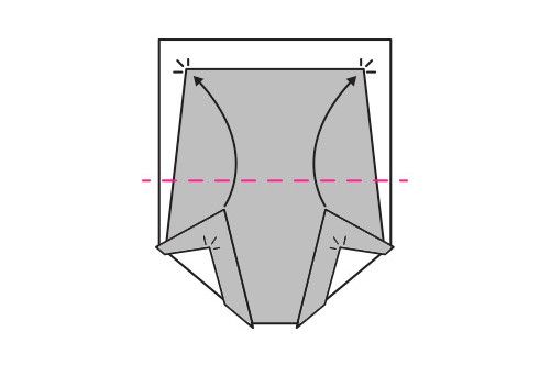 2. Затем выверните нижние углы наизнанку и заправьте их в ближайшие верхние, чтобы все углы совпали.